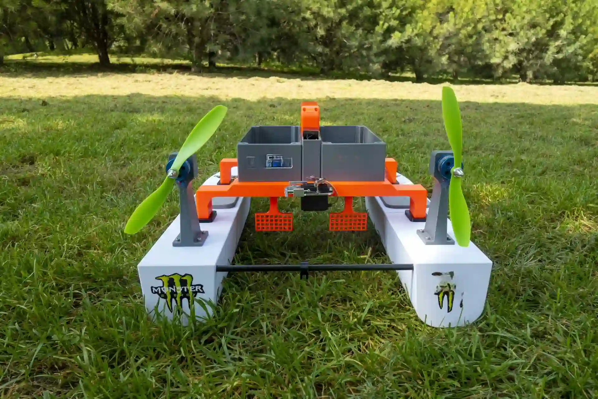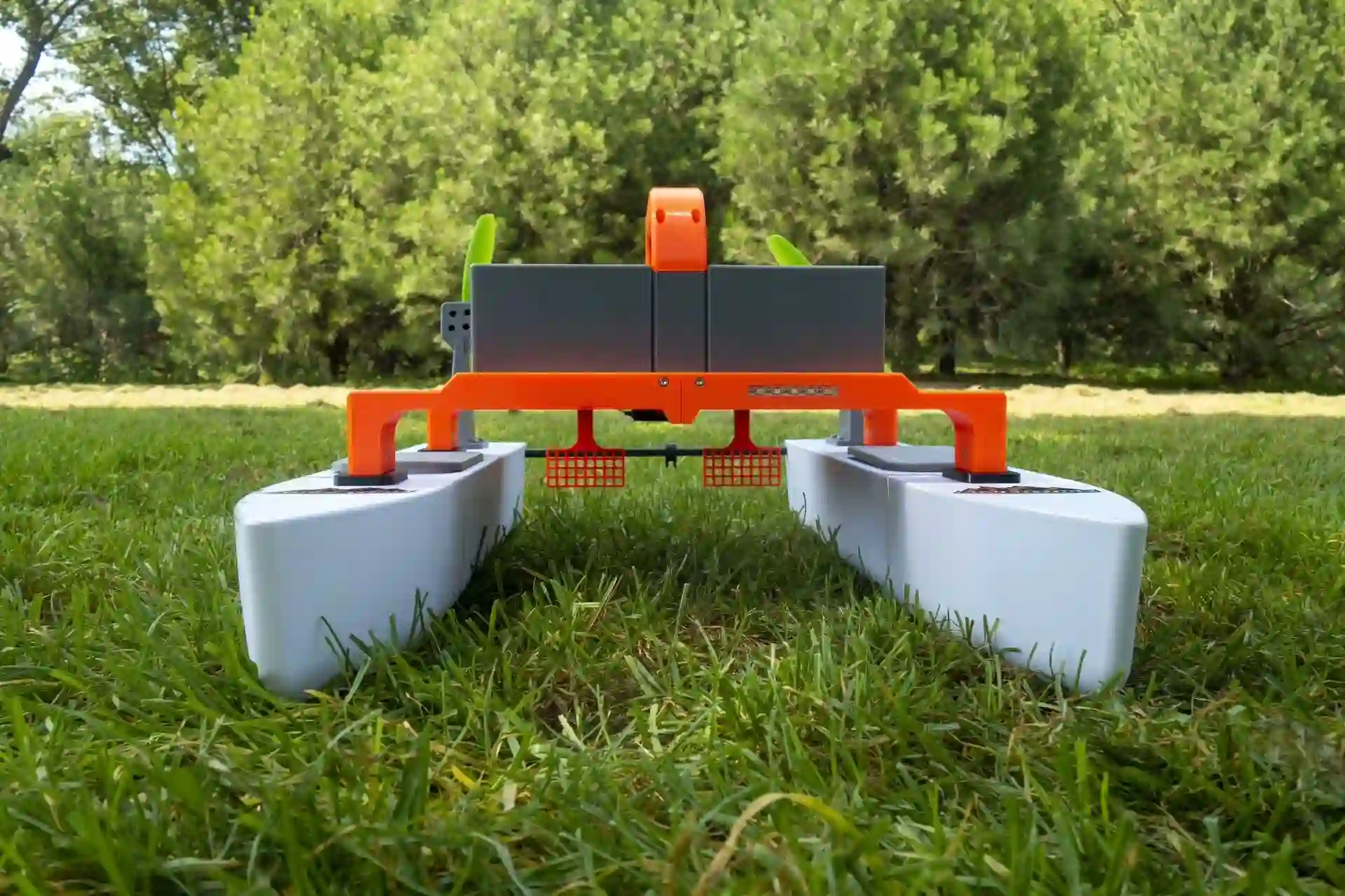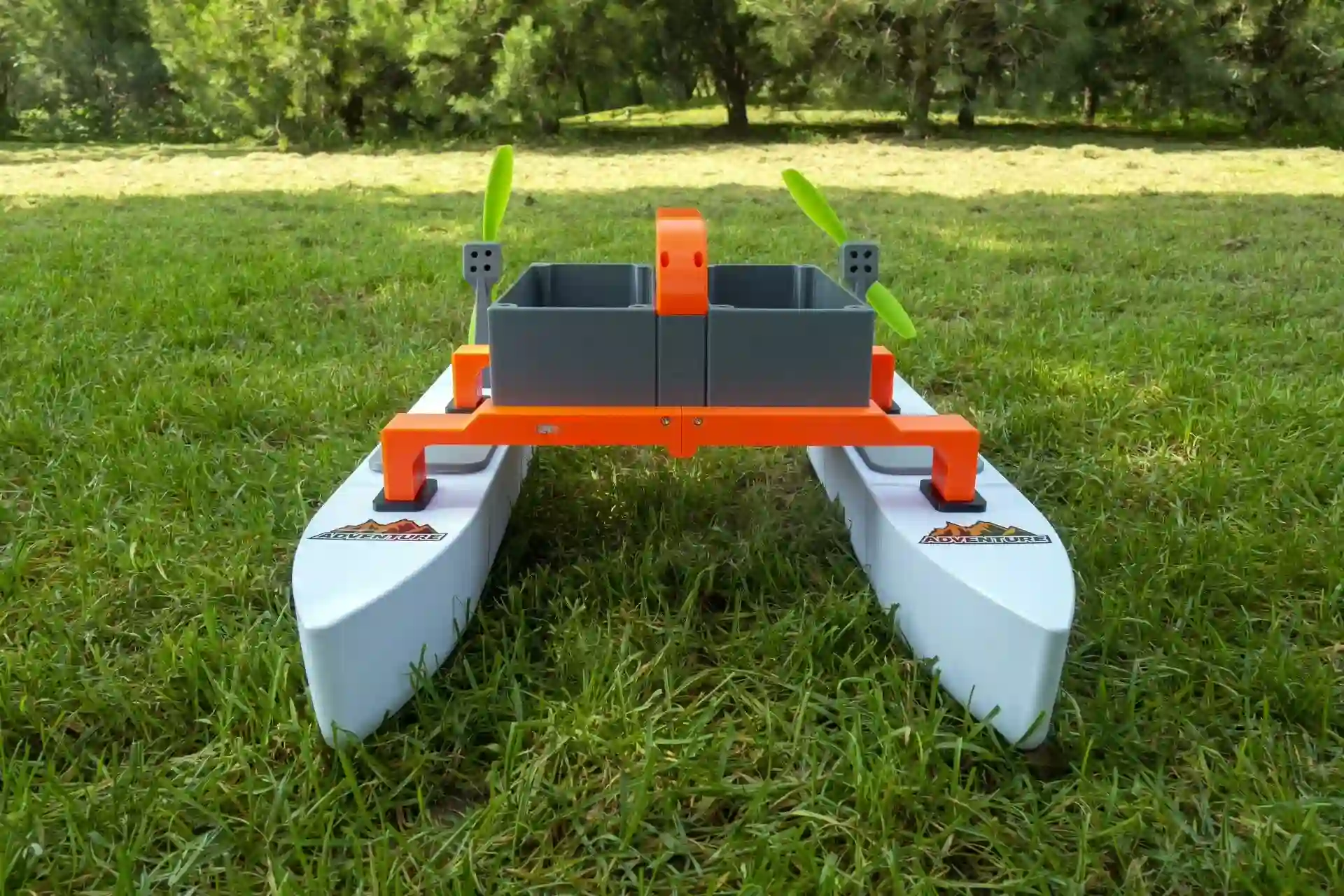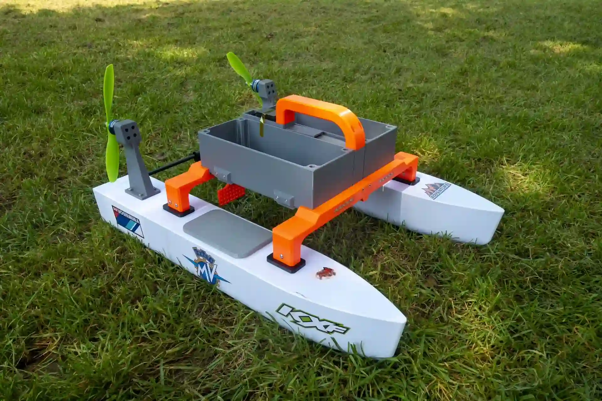 All 3D-Printed Parts: Pontoons, TPU hatch covers, main frame, handle, dual bait tanks, electronics box, motor mounts, rescue assistant frame.